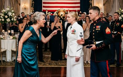 She grabbed a military police officer and demanded I be arrested for impersonating a Navy captain. Seconds later, he scanned my ID, called the entire ballroom to attention, and every officer in the room stood for the woman my mother-in-law had spent seven years calling “just Frank’s wife.” She thought she was humiliating me in public. She had no idea she was about to expose herself instead.