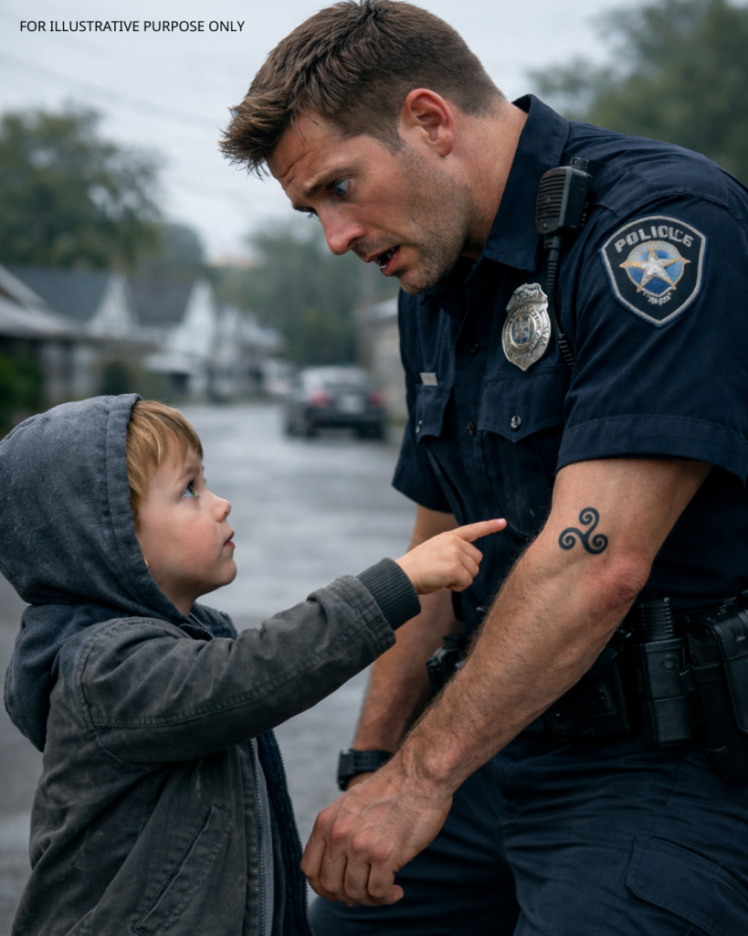 A little boy—no more than four—stood there, staring up at him with a seriousness that didn’t belong to someone so young. He wasn’t looking at the badge. Or the uniform. Or the radio clipped to Lucas’s shoulder.