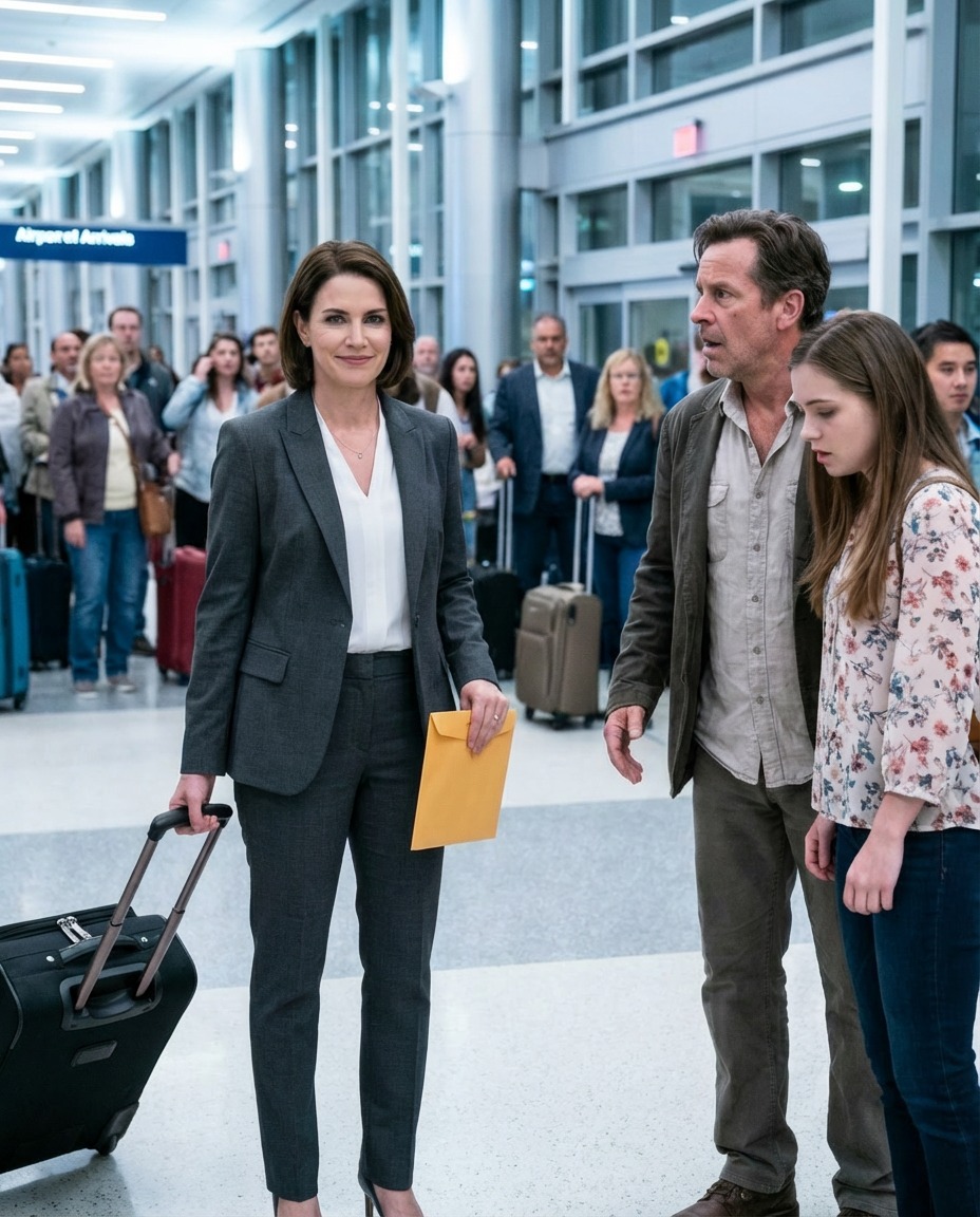I had just stepped off the plane, my suitcase still in my hand, when I halted so abruptly that the man behind me grumbled. Across the arrivals area, under a glowing airline sign and surrounded by travelers hauling bags and embracing loved ones, stood my husband, Daniel. His arm circled his secretary, Melissa, with a familiarity that didn’t belong to confusion. She leaned into him, smiling as if she fully belonged there. Then Daniel lifted his gaze and saw me.