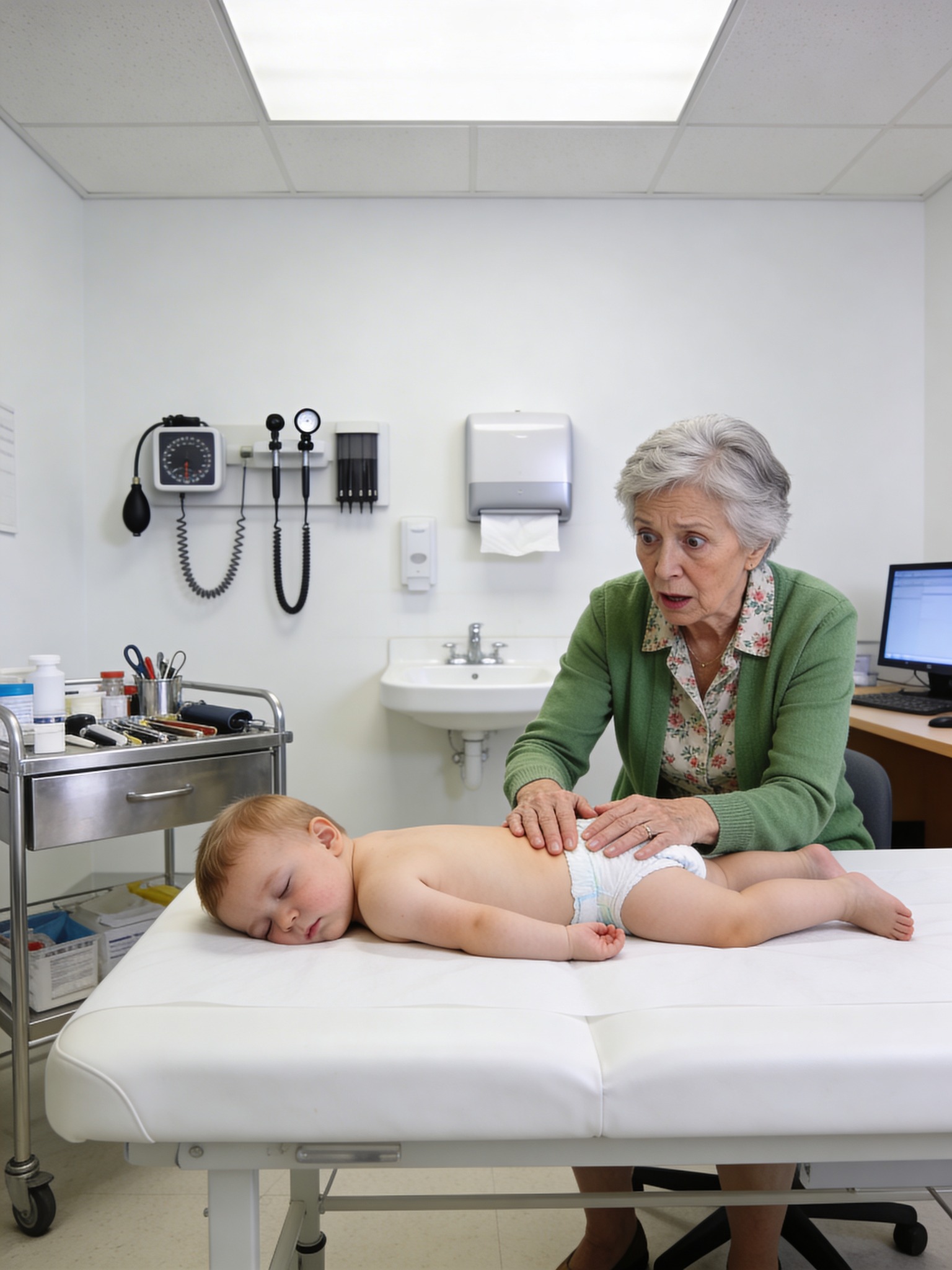 Just above the diaper line on his lower abdomen was a dark, swollen bruise shaped like fingerprints, deep purple against his fragile skin in a way that could not be explained away.